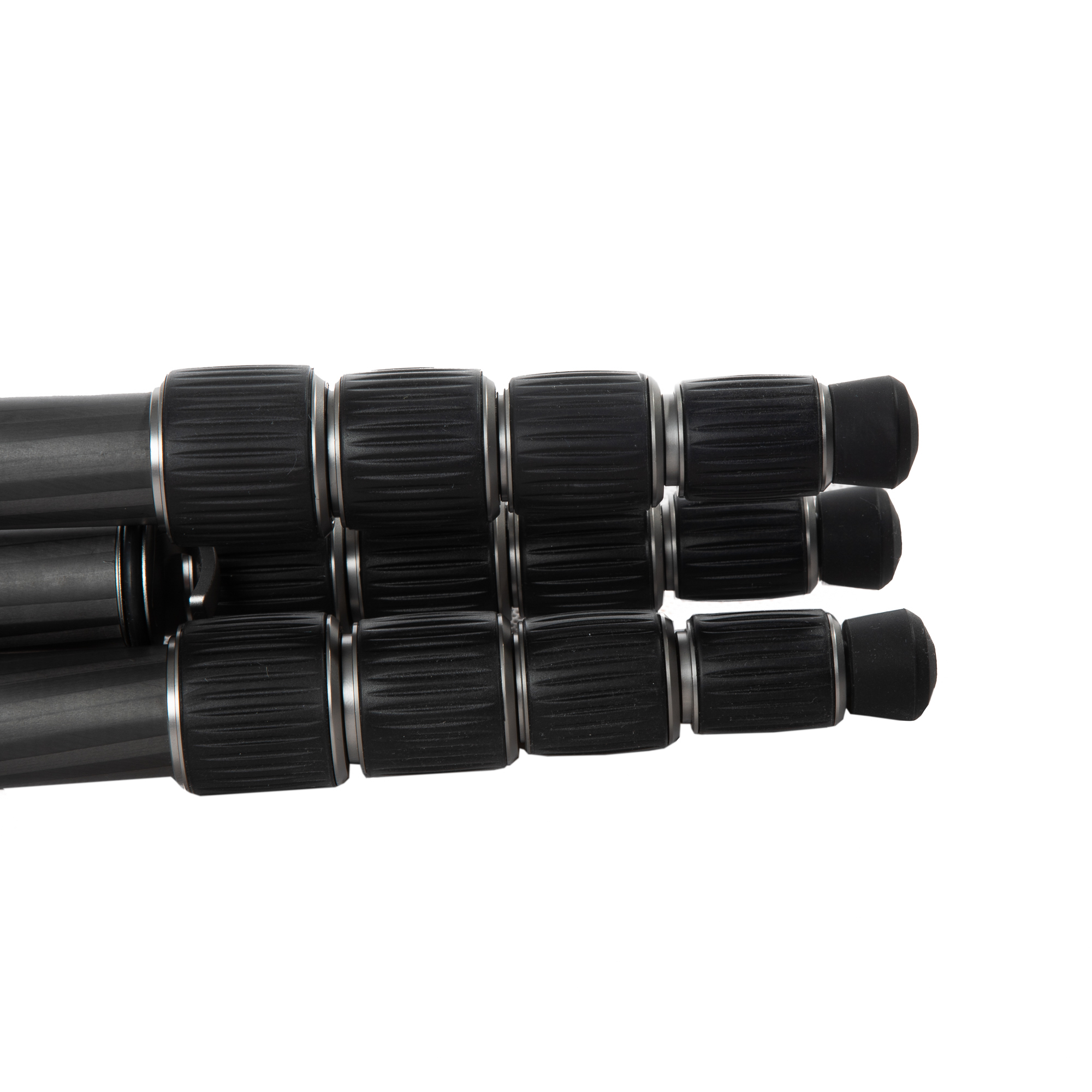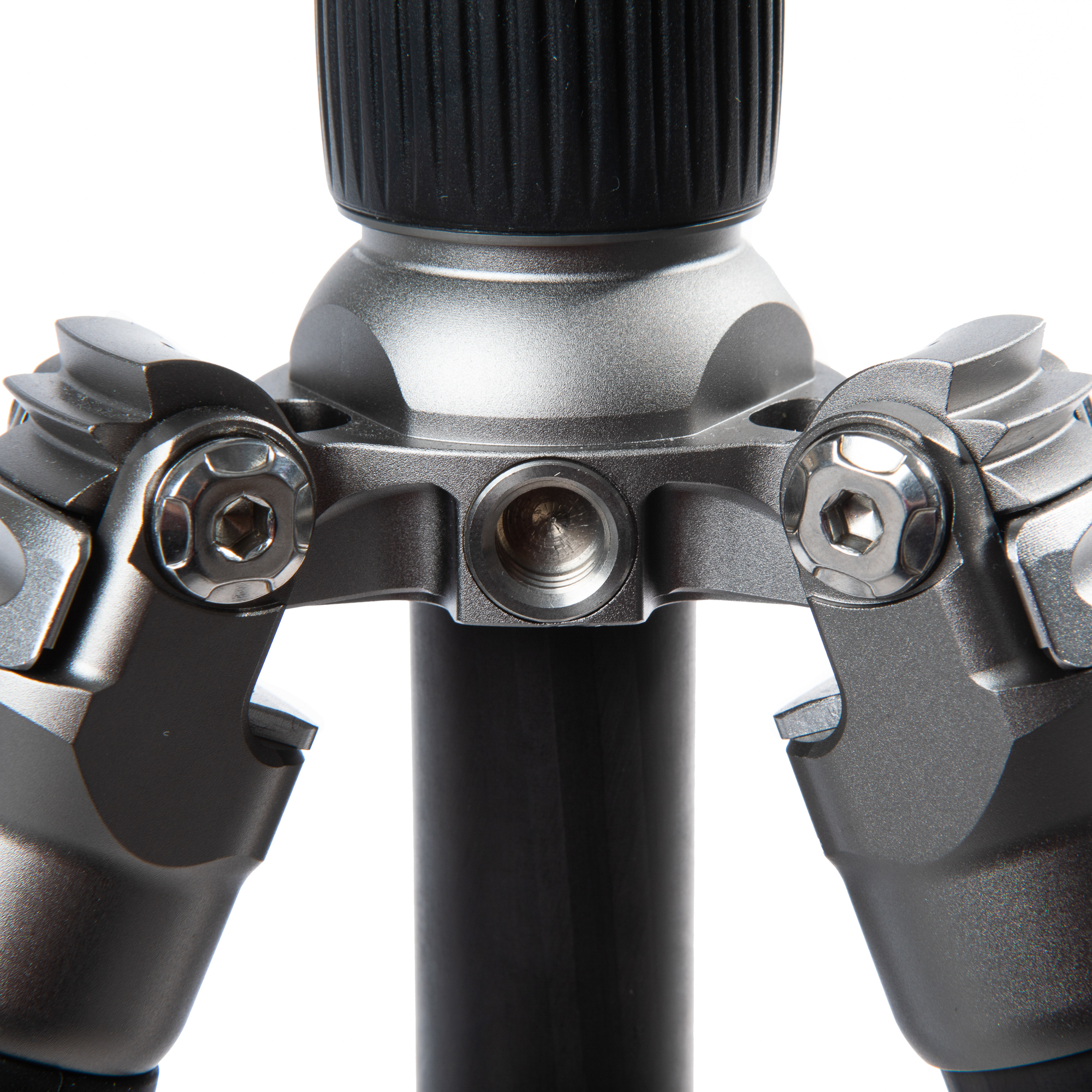 Five sections extend to create a high maximum working height and reverse fold to ensure a portable carry. The two-stage centre column adds additional height when required. Three leg angles selections can be made to settle the tripod on uneven terrain and also to allow for super low angle shooting when the legs are splayed out and used with the short centre column. The hook at the bottom of the center column enables you to hang a small sandbag or camera bag to stabilize the tripod. Plus, variable leg-angles allow the tripod to have a minimum height of 16.5cm, and the center column is also reversible to let you get even closer to the ground.