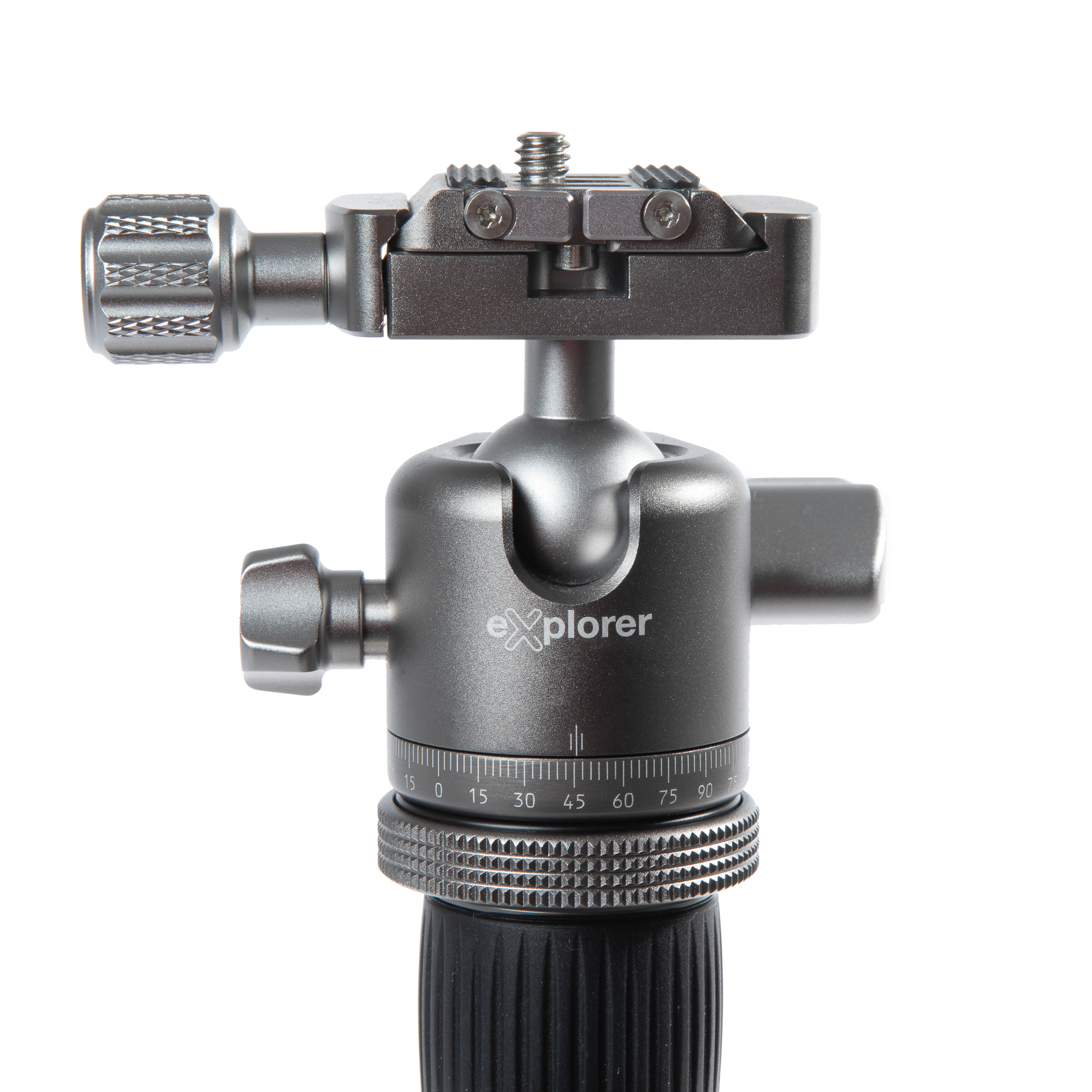 The BX-25 ball head has a high load capacity of 14kgs however is very compact in size. 360-degree panning function is smooth and easy to operate. The included clamp is Arca type compatible allowing the use of any Arca type plate or L-bracket. In addition, with the ball head’s single-cut notch, the camera can be placed in a 90° angle.
