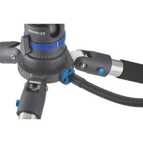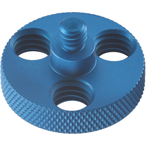 The Adapter QP RED for TrioPod PRO75 and QuadroPod Variable Base from Novoflex screws into a 1/4″-20 socket of either base. It offers three 3/8″-16 threaded sockets, expanding the possibility of attaching more than one tripod accessory into the adapter via its threaded sockets.