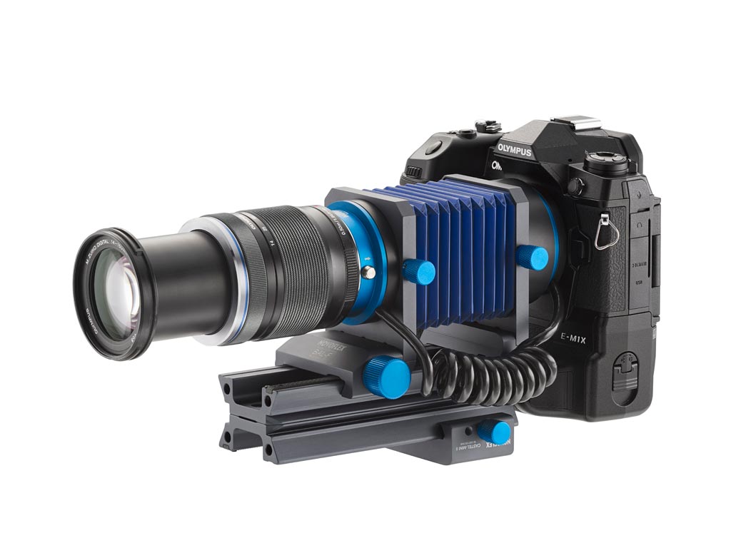 Novoflex Auto Bellows for Micro Four Thirds Mount Camera and Lenses Stepless extension = distance between sensor plane and lens (= image distance); thus making format-filling photographing of smaller objects possible