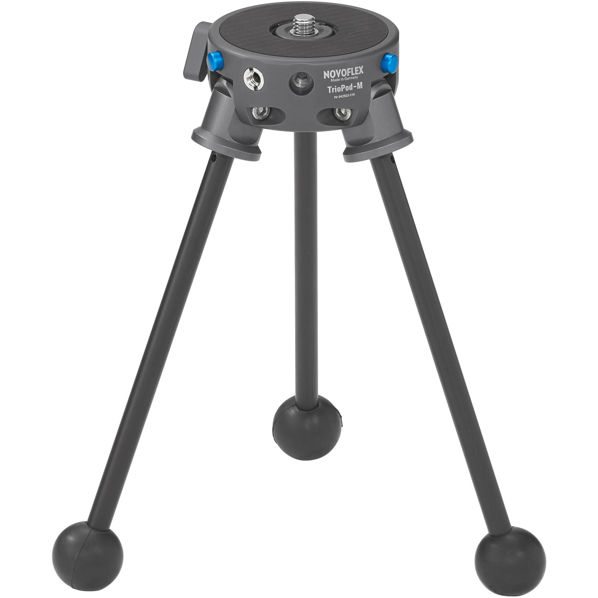 NOVOFLEX TRIO-M Mini has no center column and comes with Mini legs for low to the ground or table shooting. Add optional TRIOPOD legs for more versatility.
