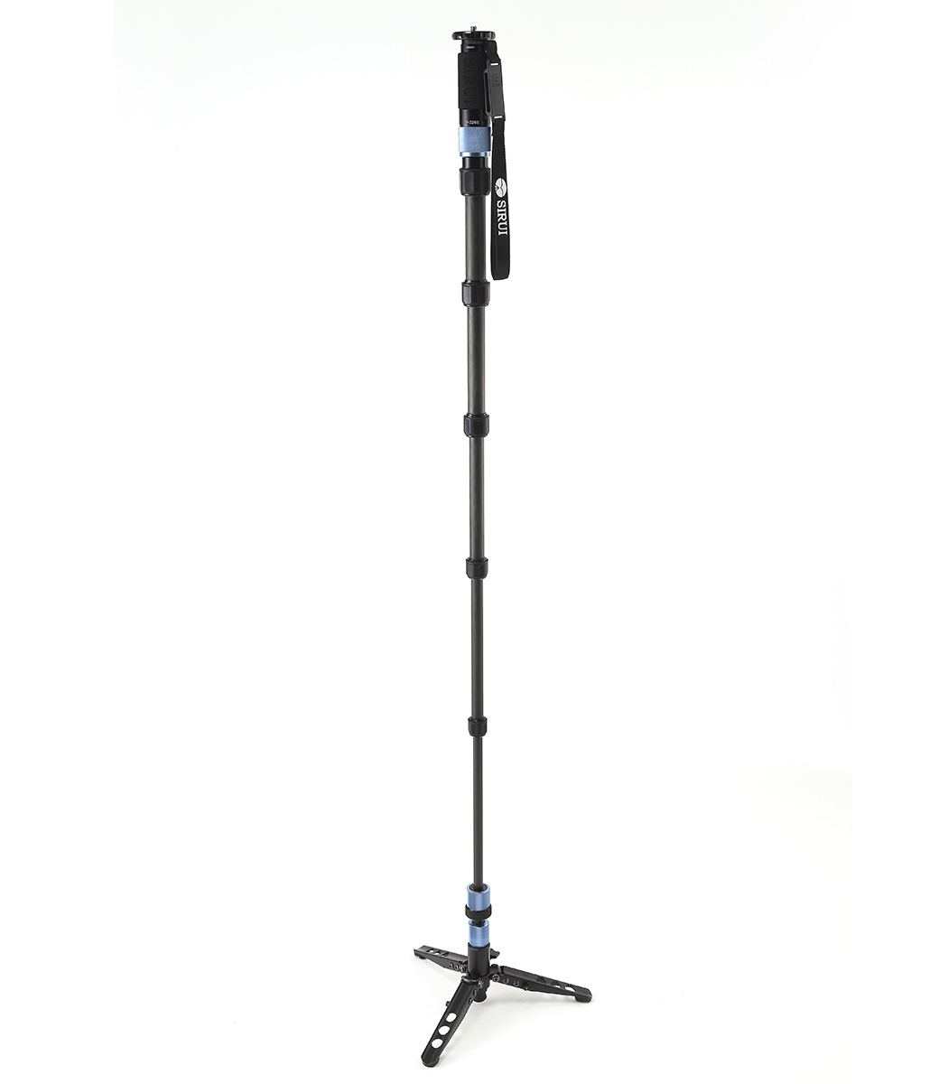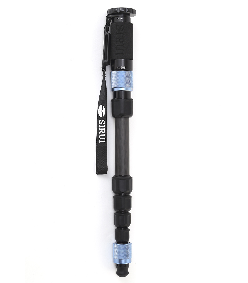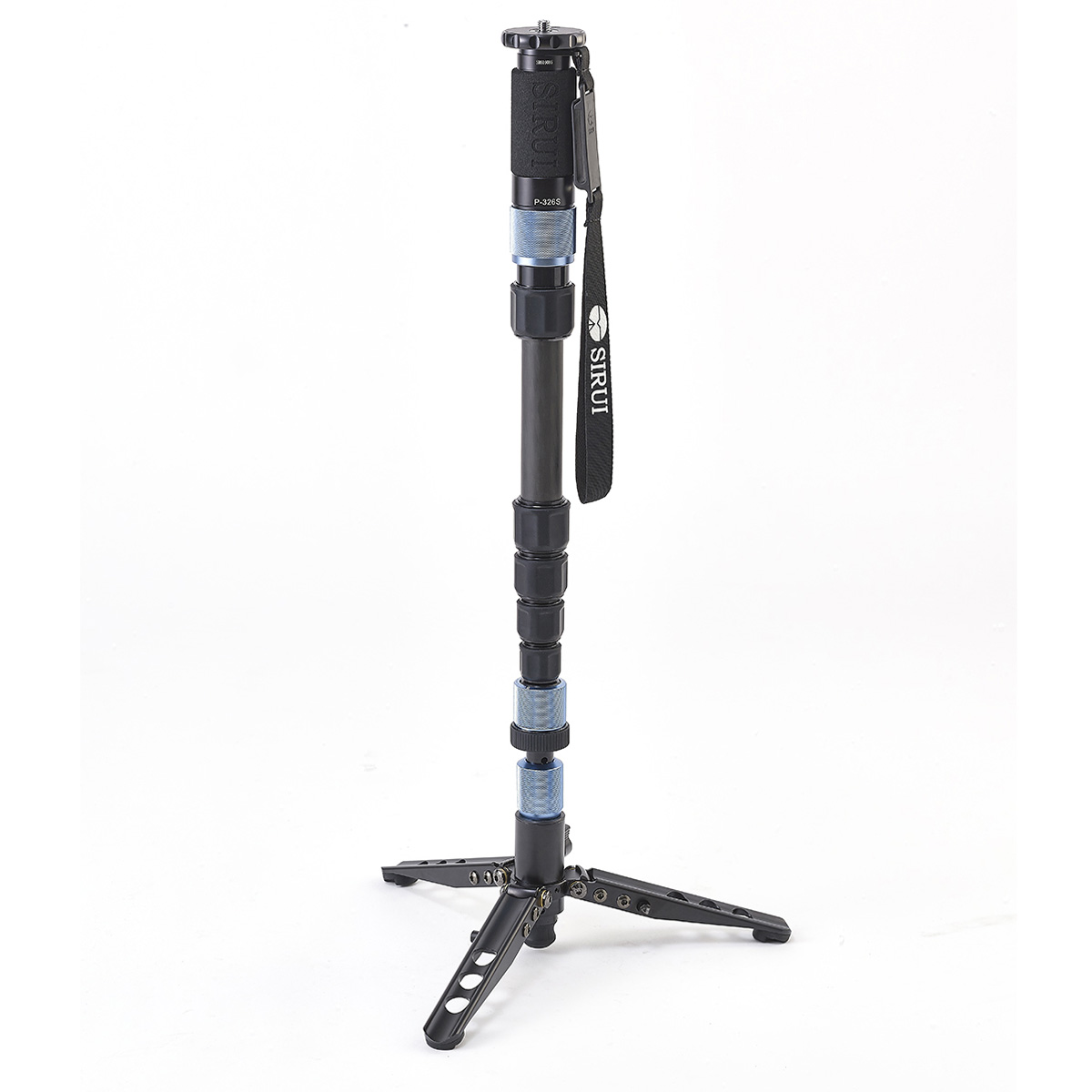 The Sirui P-326SR Carbon Fibre Photo/Video Monopod is a 6-section carbon fiber monopod with three fold-down support feet for additional stability. In addition, an adjustable friction control ball head mechanism in the base of the monopod and a panning hand grip enable smooth 360° pan and 20° tilt movements. The three support feet fold up and lock into position against the monopod and can even be removed entirely and used as a table-top tripod. A large rubber base foot is available for conventional use and it can be removed and replaced with the included spike foot for use on soft or slippery ground. It weighs just 1.5kg but can support a load up to 8kg.