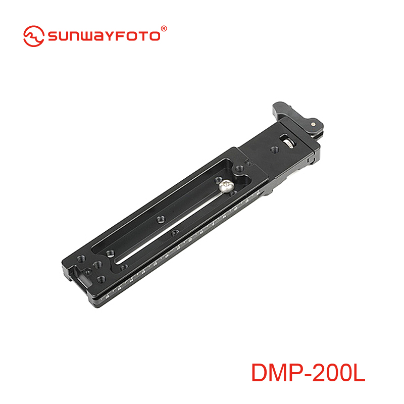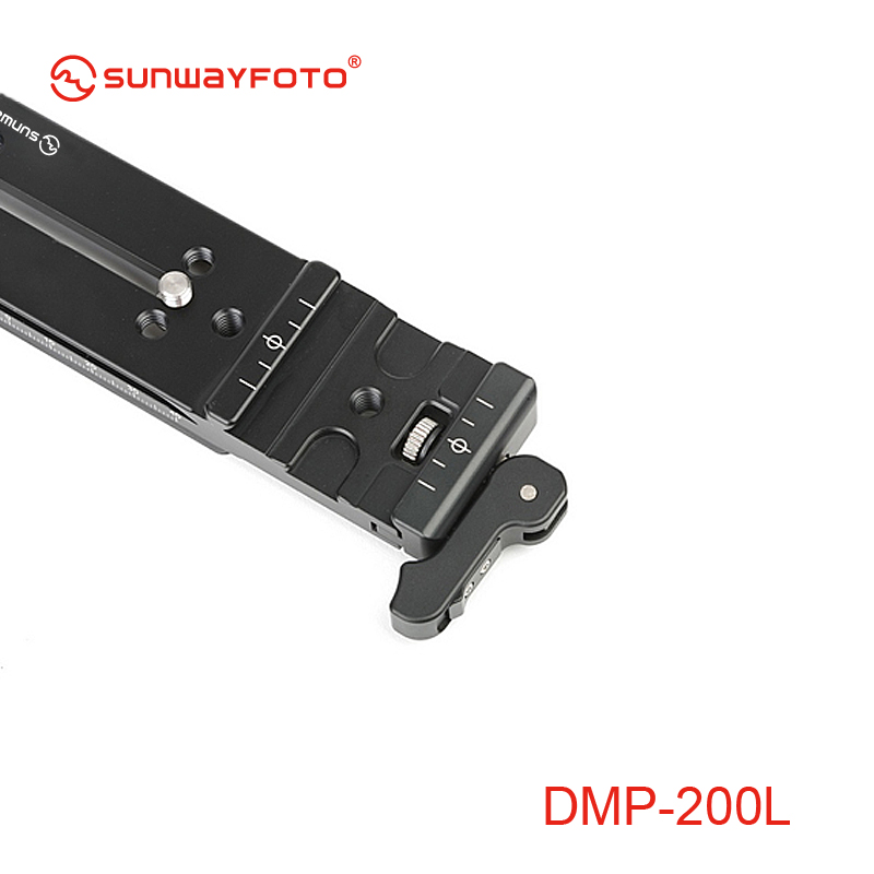 Sunwayfoto DMP-200LR Multi-Purpose Rail Nodal Slide with lever-release clamp, CNC cutting machine from lightweight aircraft-grade aluminum, stain anodized surface finish for better abrasion and corrosion-resistant. Compatible with all Arca-Swiss-style plates.