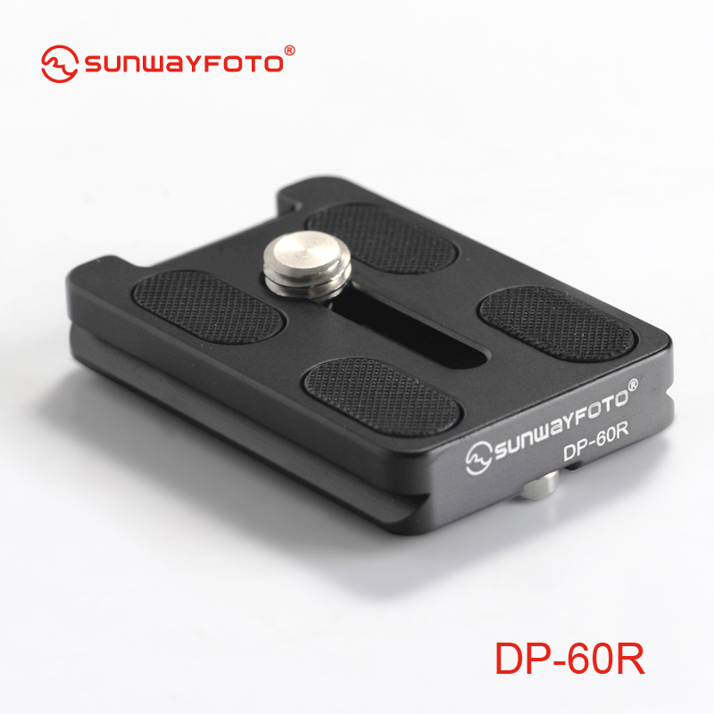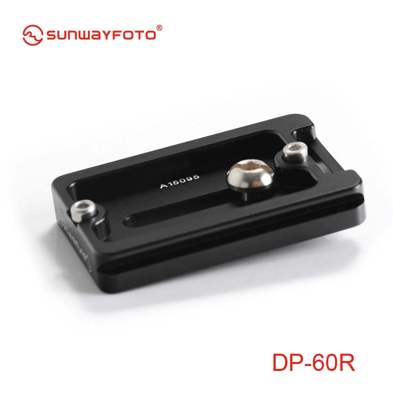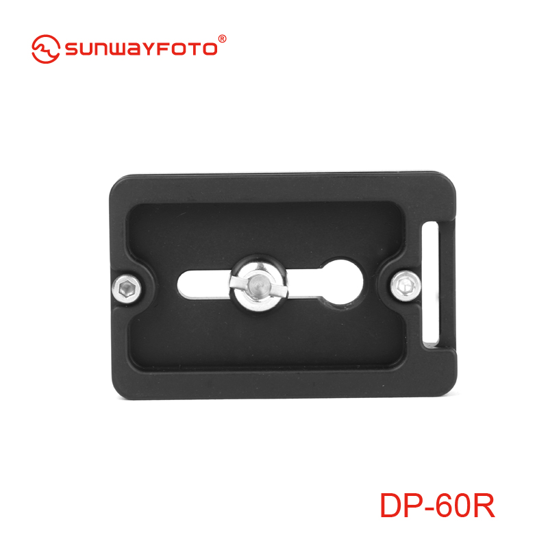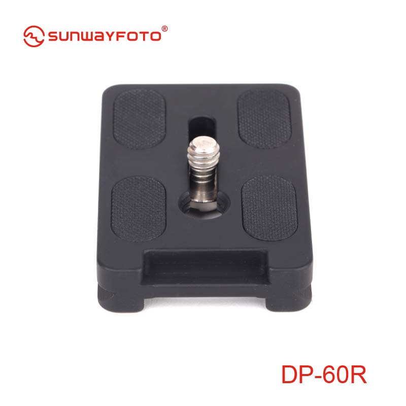 The Sunwayfoto DP-60R Universal Quick-Release Plate is an Arca-type and RRS compatible plate made from CNC machined aluminum. It has a satin anodized finish that provides resistance to abrasion and corrosion. Dual safety-stop screws prevent the plate from being accidentally released from its clamp. Rubber mats on the top of the plate provide an anti-twist surface so that your camera stays aligned with the plate, and a slot on the plate allows you to attach a camera strap. Two hex keys are included for adjusting the safety-stop screws and camera mounting screws, two of which are provided: a 1/4″-20 and 3/8″-16.