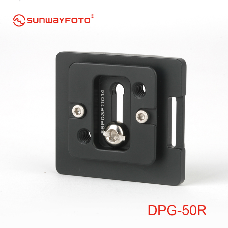 Sunwayfoto DPG-50R universal quick release plate, one piece CNC cutting machined from light weight aircraft-grade aluminum, stain anodized surface finish for better abrasion and corrosion resistant. Arca-Swiss style, ideal for Canon 5D, 5DII, 7D etc.
