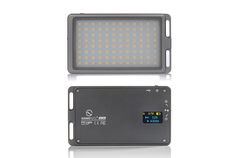 The FL-96 from Sunwayfoto is a lightweight yet powerful LED light. The FL-96 LED has a pocket size of 116 x 67 x 10 mm and weighs only 132g. The aerospace grade aluminium frame and back cover not only makes the light more durable but also helps to reduce the heat faster to keep the product last longer. With built-in 2500mAh lithium battery, the FL-96 is powered for up to 17 hours at 5% brightness (1 hour at 100%) and can be recharged with the included micro-USB cable.