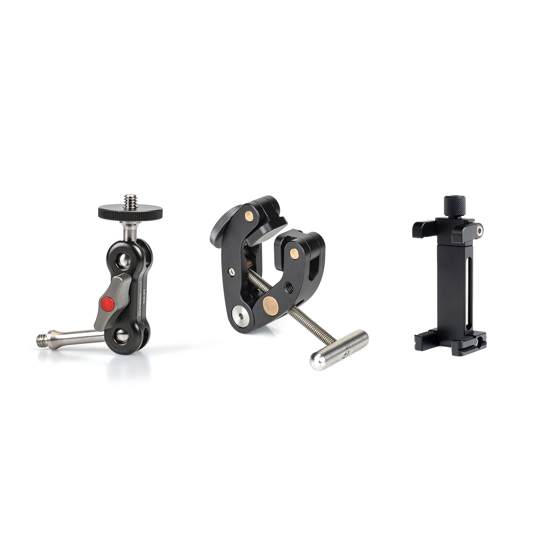 The Sunwayfoto GA-01 T3 Kit with Magic Arm + Titan Clamp + Mobile Phone Bracket is a great way to attach a mobile phone to anything 0-55mm in width.
