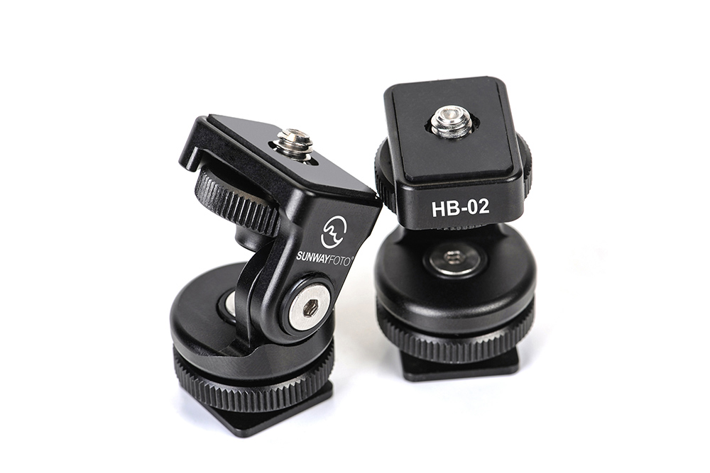 Sunwayfoto HB-02 Hot Shoe Tilt Head is an all-metal multifunctional Tilt head with a hot shoe mount. The HB-02 is small and easy to carry at only 36g and has a payload of 2kg.