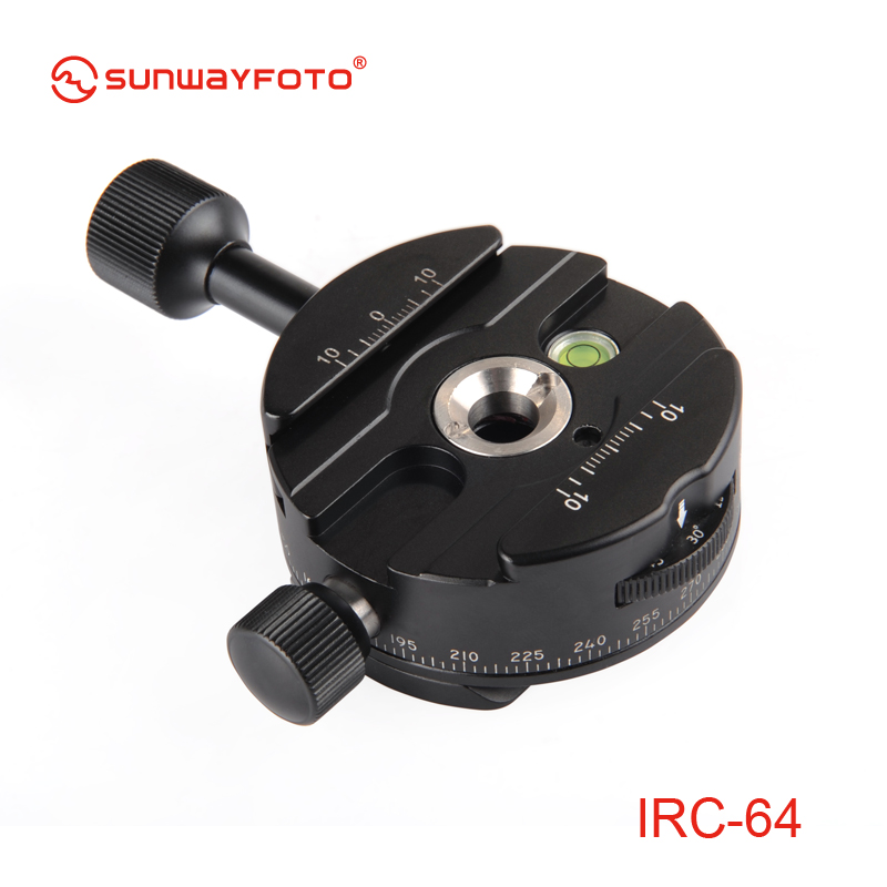 Photograph your world in 360-degree splendor with the Sunwayfoto IRC-64 Panoramic Indexing Rotator Panning Clamp. This clamp is an Arca-type compatible panning clamp that can attach directly to your tripod, or on top of your ball head. When mounted directly on a tripod, it’s a simple panning head. The included Arca dovetail plate allows you to mount the IRC-64 on an Arca-type compatible ball head – it adapts any head with an Arca-type receiver into panoramic support.