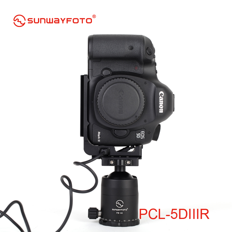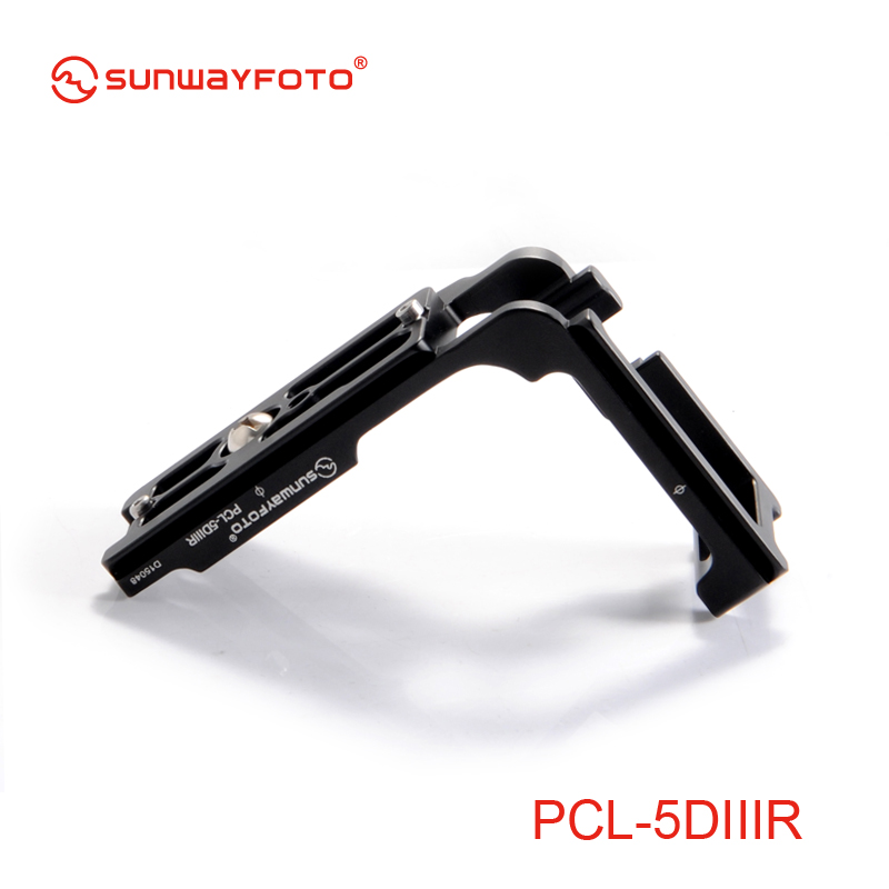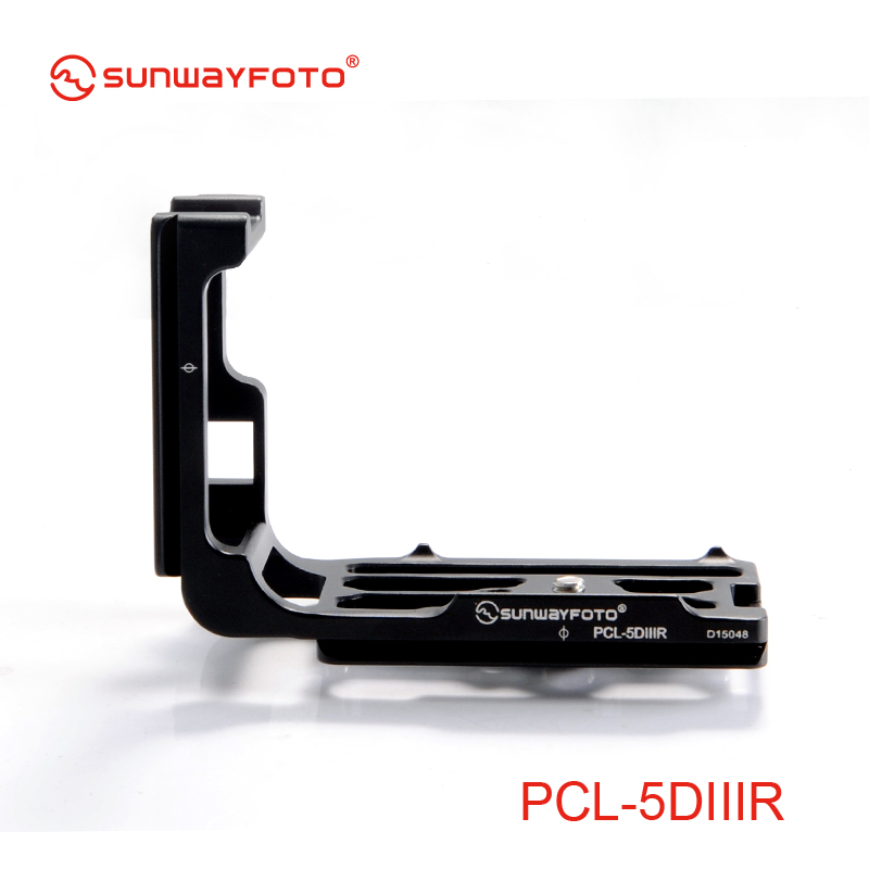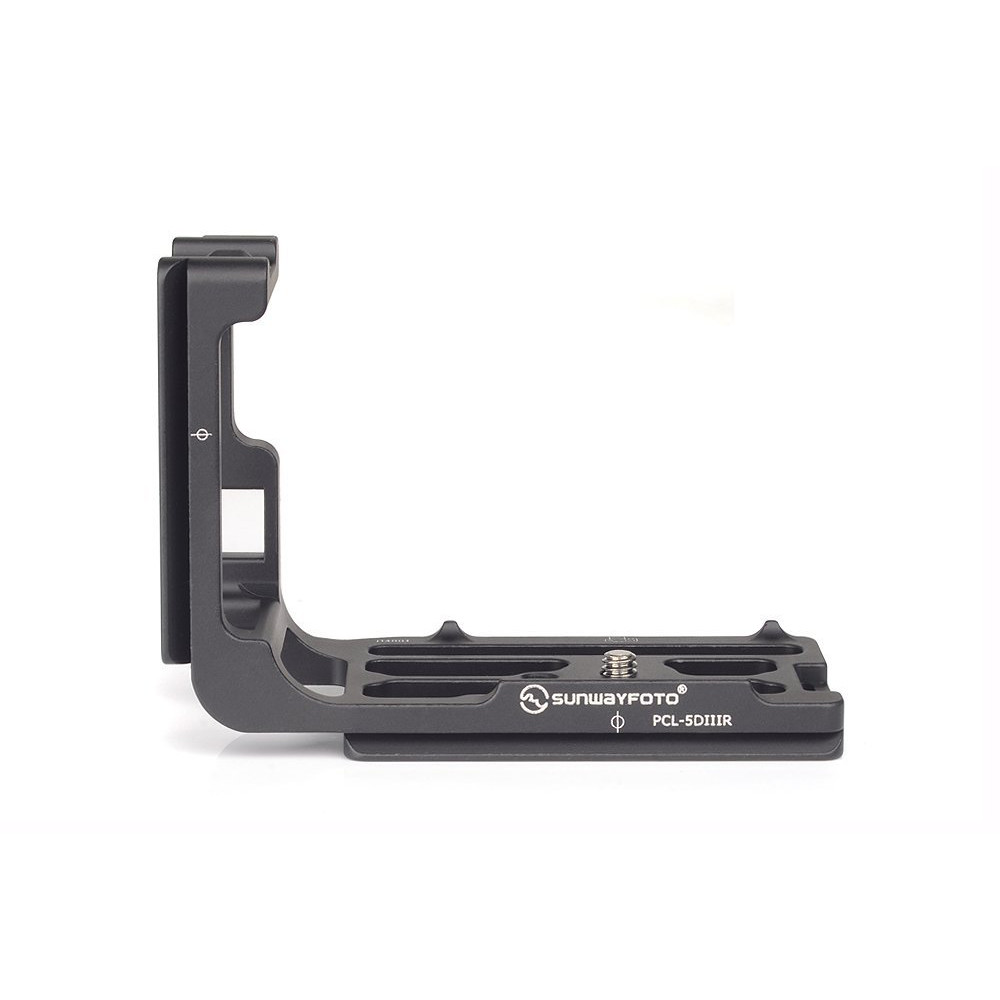 Sunwayfoto PCL-5DIIIR Custom L Bracket for Canon 5D III is CNC-machined from solid aluminium alloy. The PCL-5DIIIR L Bracket from Sunwayfoto enables reliable camera support for both horizontal and vertical shooting on a tripod or monopod. It is dedicated custom design for the Canon 5D III DSLR and is compatible with both Arca-type and Really Right Stuff lever clamps.