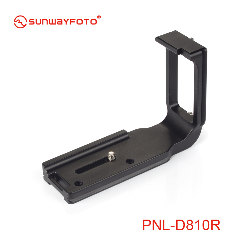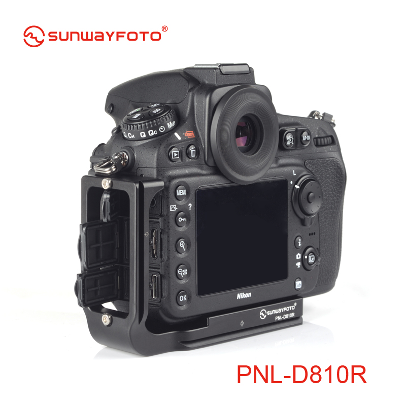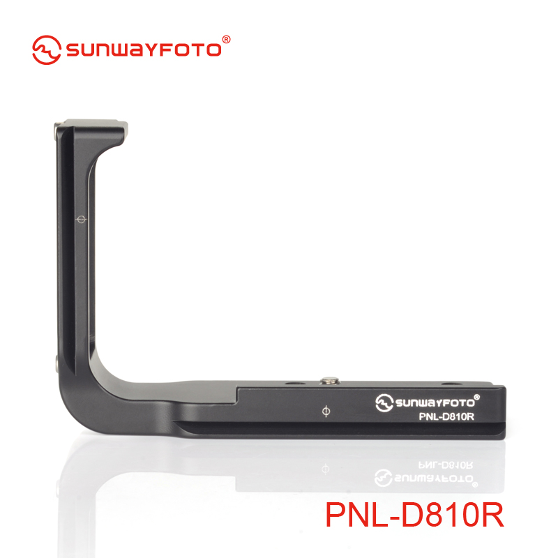 Sunwayfoto PNL-D810R Custom L Bracket for Nikon D810/D800 is CNC-machined from solid aluminium alloy. The PNL-D810R L Bracket from Sunwayfoto enables reliable camera support for both horizontal and vertical shooting on a tripod or monopod. It is dedicated custom design for the Nikon D810 or D800 DSLR and is compatible with both Arca-type and Really Right Stuff lever clamps.