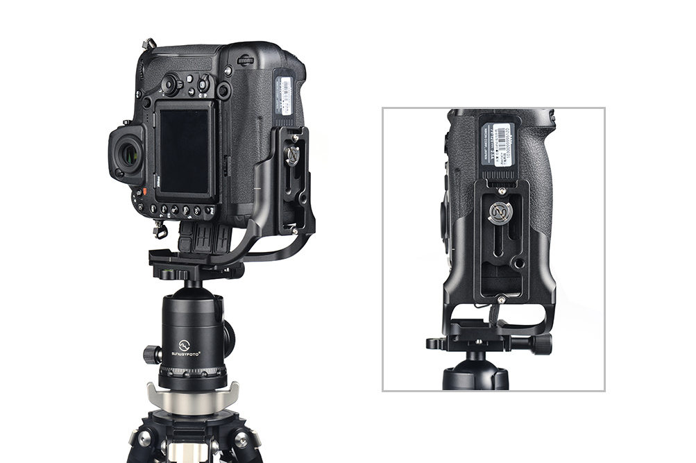 Sunwayfoto PNL-D850G Custom L Bracket for Nikon D850 with Battery Grip is CNC-machined from solid aluminium alloy. The PNL-D850G L Bracket from Sunwayfoto enables reliable camera support for both horizontal and vertical shooting on a tripod or monopod. It is dedicated custom design for the Nikon D850 DSLR and is compatible with both Arca-type and Really Right Stuff lever clamps. It is designed to be used with the Battery grip fitted to the camera.